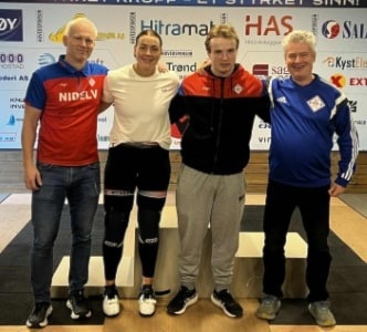Søndag stilte vi med seniorene William Stormoen og Anette Høyland. William var på jakt etter kvalifisering til NM senior. God form i oppvarming men litt ufokusert på første rykk så det ble bom på 100kg. Tok dette i neste og høynet til 105kg i siste rykk. Dette gikk også relativt lett opp. Han måtte da støte 137kg for å klare kvalifiseringskravet. Første støt på 128kg gikk lett. 133kg i neste ble for tungt i vendingen. Resultat og seier i sin klasse var allerede sikret så det ble forsøk på 137 siste løft. Det ble bom i vendingen her også, så sluttresultat ble 128kg i støt. Gullmedalje i klassen og 3. beste senior i mesterskapet.
