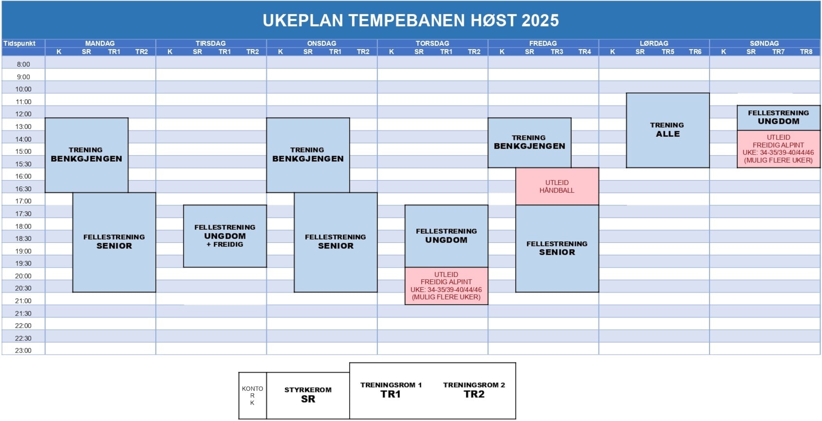 Treningstider for VektløftergruppaVektløftergruppa har forskjellige treningstider avhengig av alder og nivå.Ta kontakt med Jonny Block for mer informasjon om disse treningstidene.Kontaktperson: jonnyb@nidelv-il.no
